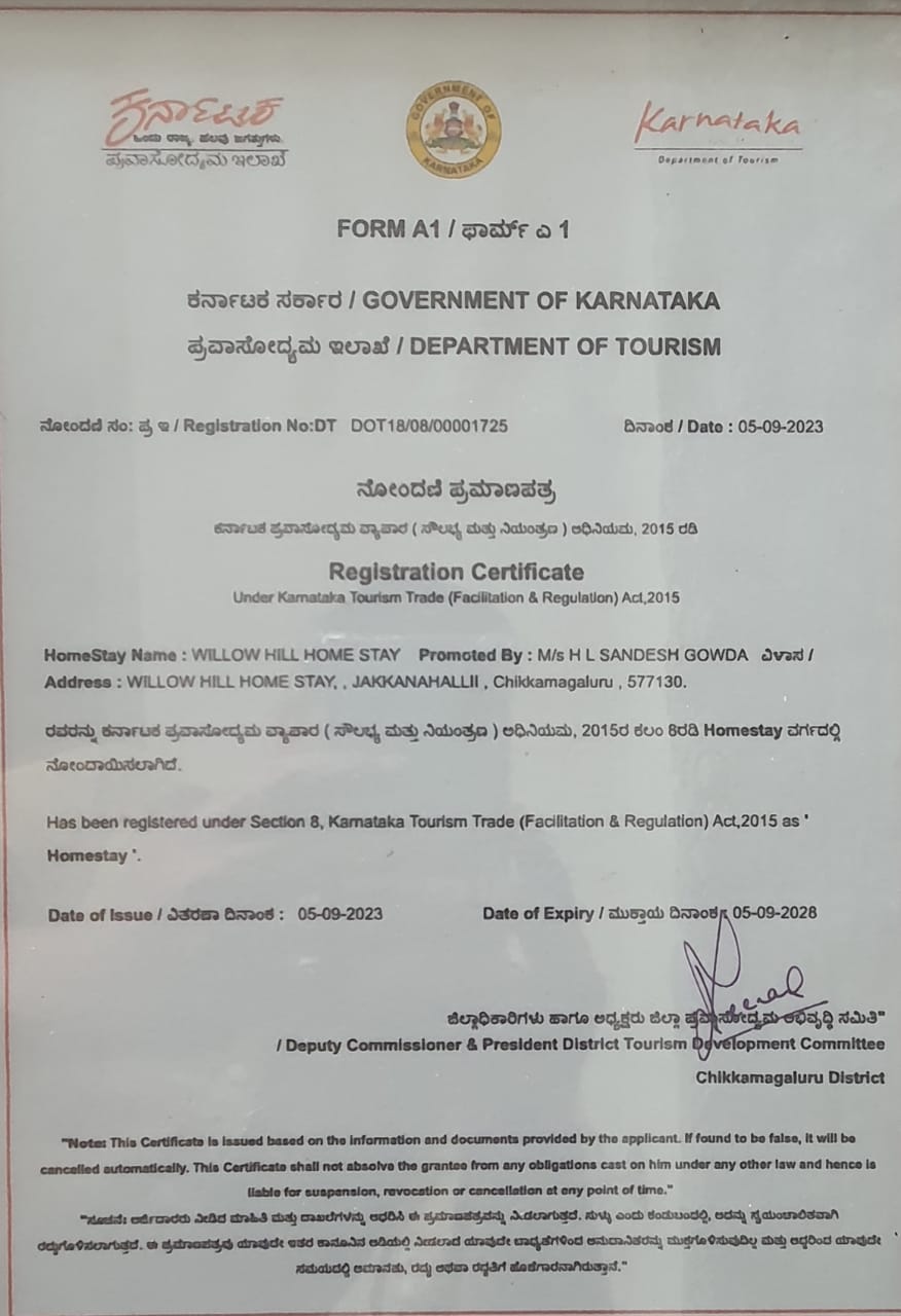 NESTLED 15 KMS FROM CHIKMAGLUR CITY A TRADITIONAL COFFEE ESTATE WITH HUGE TREES AND ARABICA COFFEE BUSHES IT IS NATURES VERY OWN RETREAT IF YOU SEEK PEACEFUL HOLIDAY AWAY FROM THE CROWD THEN YOU HEAD TO WILLOW HILL HOMESTAY WHERE NATURES BEAUTY WILL LEAVE YOU SPELLBOUND WITH MODERN COMFORTS.